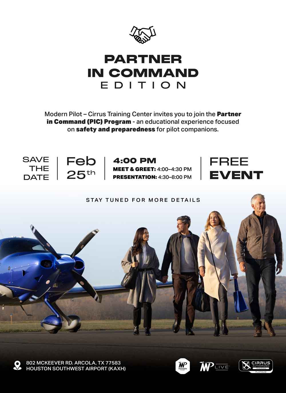 We'll have presentations from Cirrus Aircraft, a review of Modern Pilot Platinum Cirrus Training Center's first five years, and some exciting new announcements for Modern Pilot in 2026 and beyond
